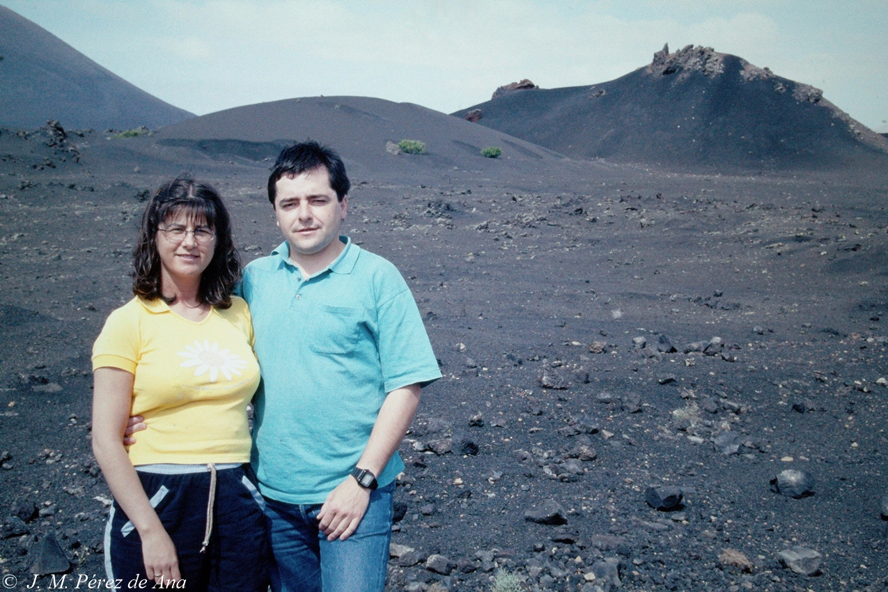 Tras casarnos Maite y el que esto escribe el 21 de abril de 2001, el 22 de abril fuimos de "viaje de novios" a las Islas Canarias, donde nunca habíamos estado, en concreto a Lanzarote y Tenerife. Tras aterrizar, nos llevaron hasta el hotel Beatriz Playa, junto a la playa del Puerto del Carmen, donde nos alojamos. Tras alojarnos, dimos un paseo por las dunas de las playas y dentro de las zonas ajardinadas de los hoteles y sus alrededores. Vimos abundantes gorriones morunos (Passer hispaniolensis). Además, en una pequeña zona dunar con vegetación arbustiva, dos "bimbos", un Bisbita caminero (Anthus berthelotii) muy confiado y una pareja de Camachuelo trompetero (Bucanetes githagineus) buscando alimento sobre la arena muy confiadamente. El 23 de abril fuimos en un coche alquilado al Parque Nacional de Timanfaya. Desde la carretera, cerca de Macher, un macho de Cernícalo vulgar de la subespecie endémica dacotiae. Ya en el centro de recepción de visitantes de Timanfaya, un macho de Camachuelo trompetero bebiendo agua de un cubo de los que tenían para dar de beber a los dromedarios empleado que en paseos para turistas. En el control de acceso y taquilla del Parque Nacional de Timanfaya, una pareja de cuervos grandes (Corvus corax) de la subespecie endémica canariensis, fotografiados a 3 o 4 metros.